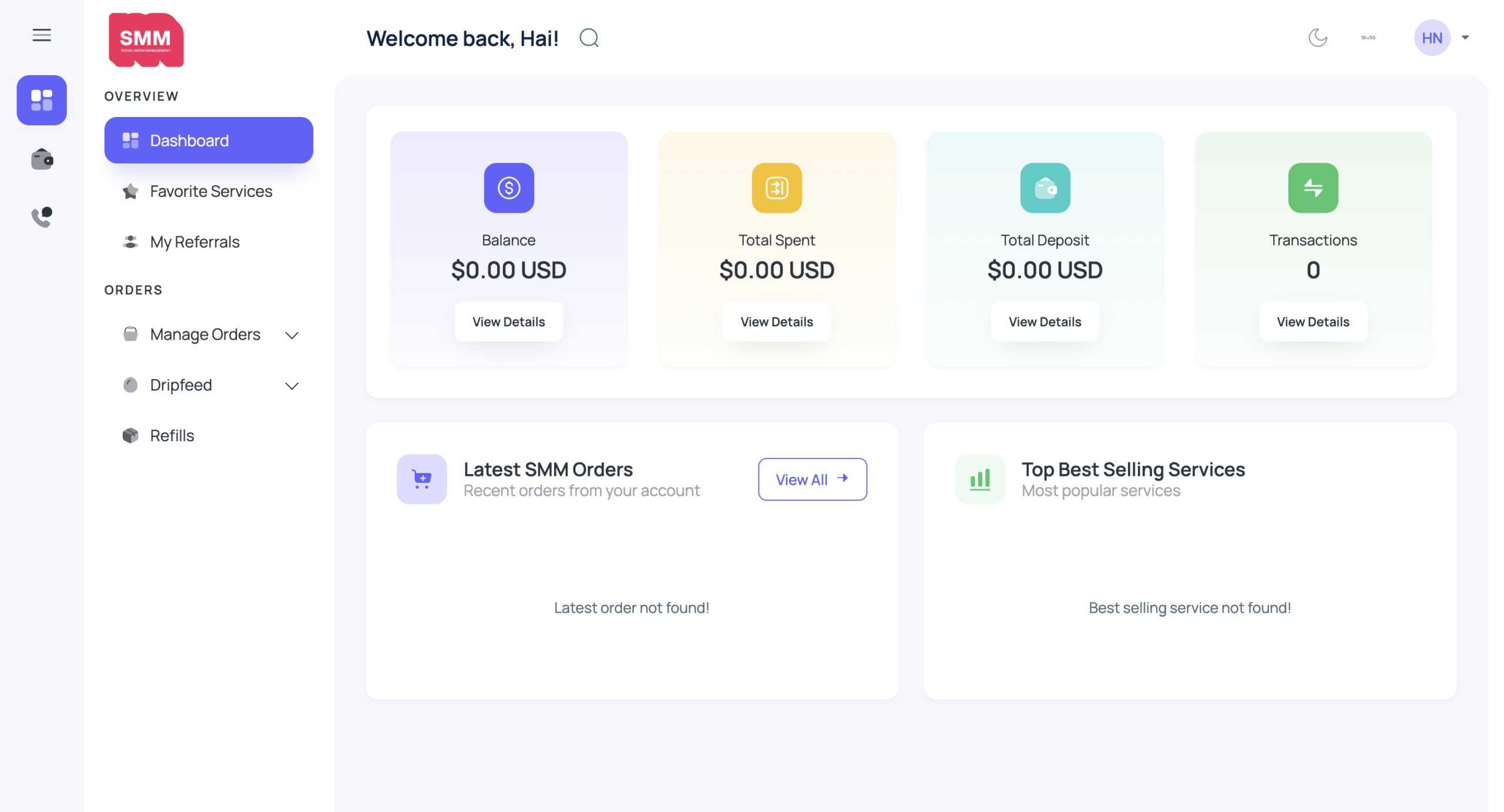 Credits are SMMATIC’s internal payment units. Users top up USD, and the system automatically converts it into Credits for service usage.